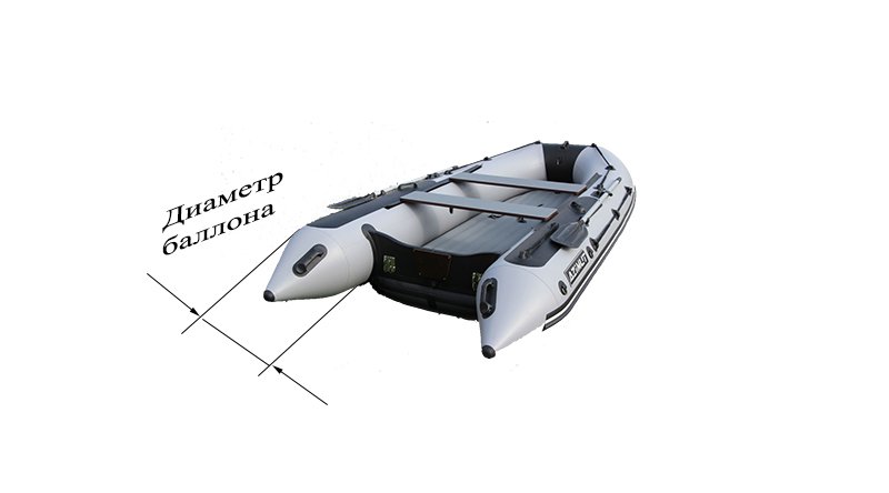 Диаметр баллона. От диаметра баллона зависит, грузоподъемность лодки. Также, чем баллон толще, в лодку попадает меньше воды при захлестывании волнами и выше расположены банки, а значит удобнее сидеть. Но слишком большой баллон дает лодке большую парусность, ветер оказывает большее сопротивление при движении. Поэтому производители ищут баланс между диаметром баллона и длиной лодки.